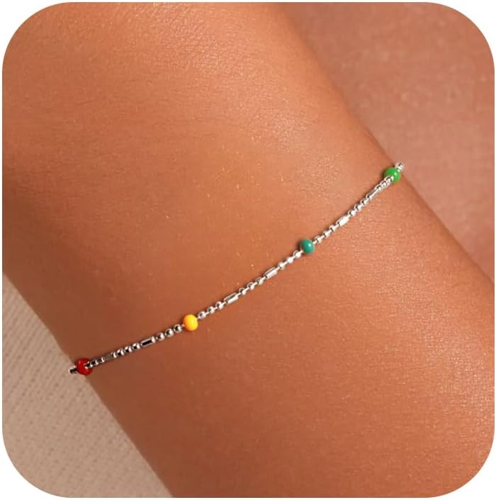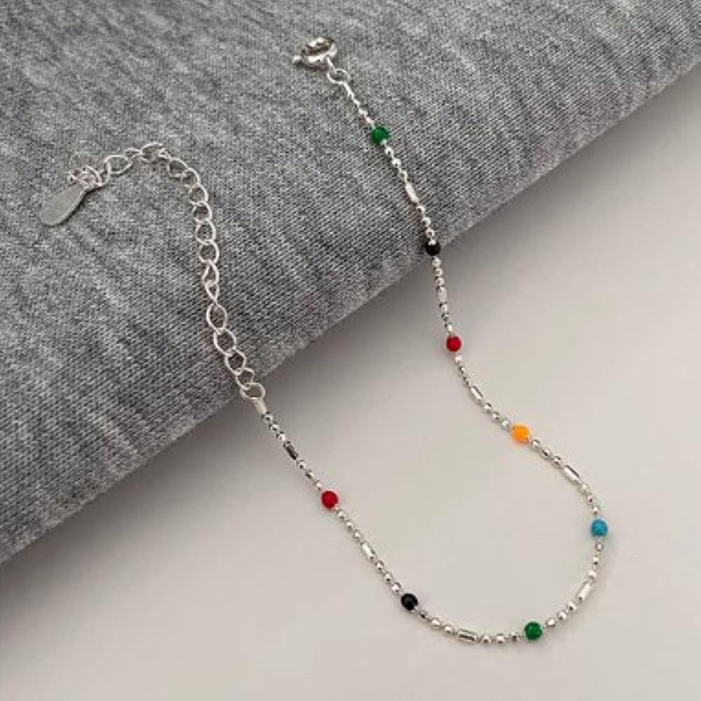 Design: This is a chain made of s925 sterling silver and bohemian colourful beads, colourful beads staggered design, silver chain glossy and bright, not easy to allergies, colourful beads full of colour, good texture, comfortable and durable to wear, a blend of niche design and ins trendy styles, colour collision eye-catching, daily wear does not collide with the models, easy to show the personality and fashion taste