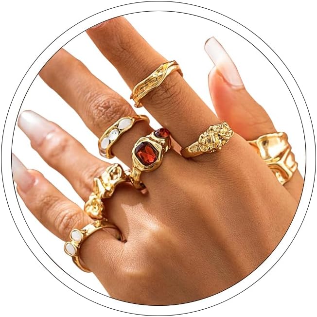 2.The gold ring set has two different styles to choose from, 7Pcs gold ring set and 12Pcs gold ring set, each ring style is different, perfect for mix and match.