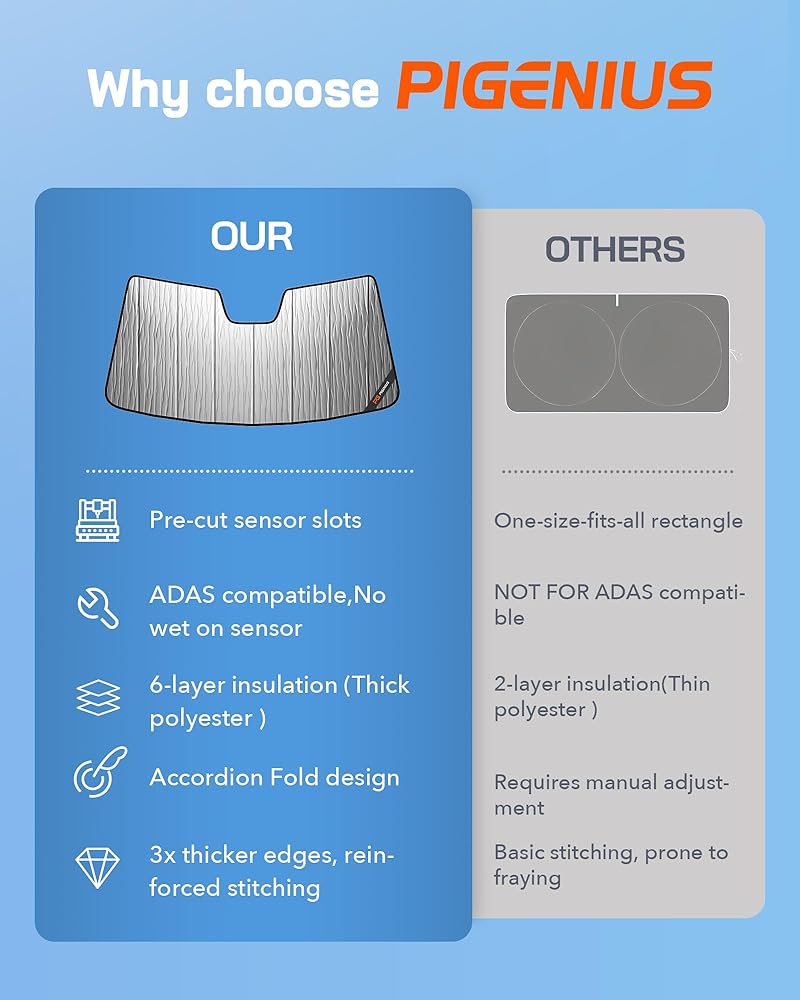- Custom Fit Design: Tailored specifically for each vehicle's windshield to ensure a perfect fit,only for Nissan Murano 2019-2024
