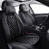 【SUPERIOR FAUX LEATHER QUALITY】: Made from top-grade faux leather, our seat covers boast exceptional quality, durability, and resistance to wear. They not only enhance seating comfort but also provide a waterproof barrier, protecting your car seats from spills, stains, and everyday wear and tear.