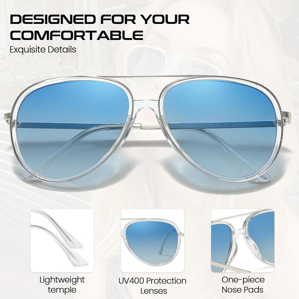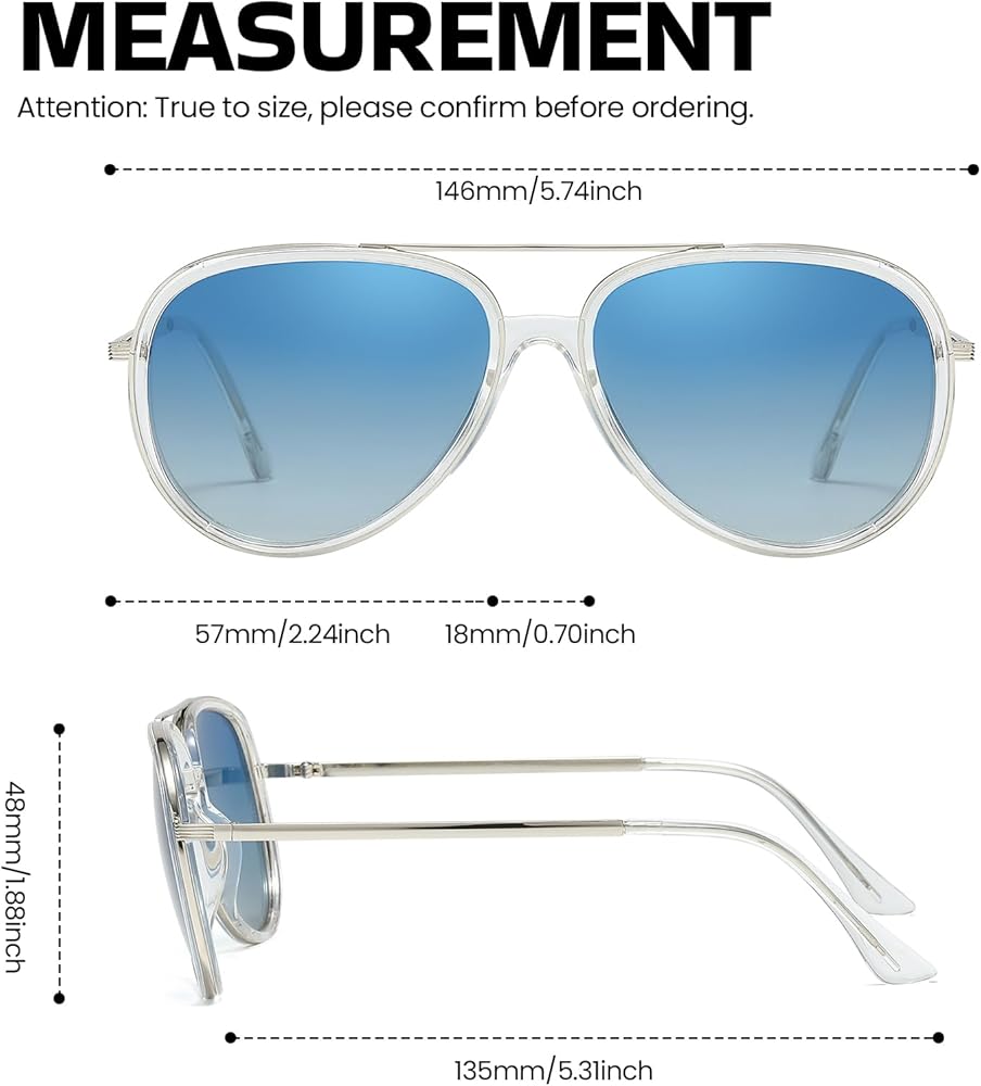 Trendy Aviator Style: The aviator design of these sunglasses is both classic and trendy, offering a timeless look that is perfect for both men and women. The stylish frame adds a touch of sophistication, making these sunglasses a versatile accessory for any outfit.