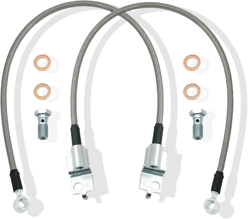[Performance]: Braided Stainless Steel Brake Line Can Withstand Higher Pressure, Hardly Swell, High-Quality Hollow Fasteners at Both Ends of Each Brake Cable Provide a Leak-Free Flow Path to Keep The Oil Quickly Pushed to The Brake Calipers , Improved Braking Performance