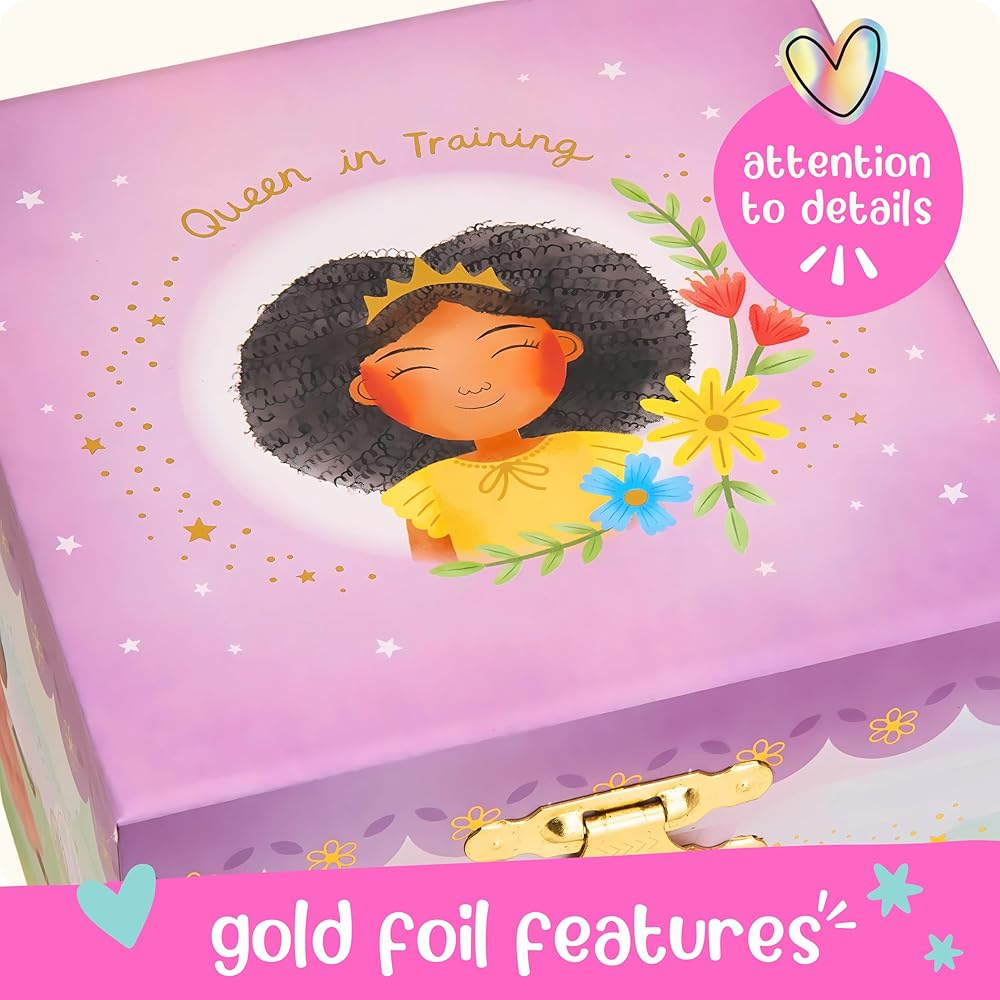 Do you remember your first jewelry box and how you felt? You can instill the same joy with this beautiful child's jewelry box. Ever present in a child's bedroom, this jewelry box for kids ages 4-8 serves as a constant reminder of the gift giver and the delight it brought when gifted. Give as princess birthday gifts for girls, 4 year old girl gift at Christmas, recitals, and more. It'll slip perfectly in your little ones princess bedroom, with her princess toys and all her girl stuff!