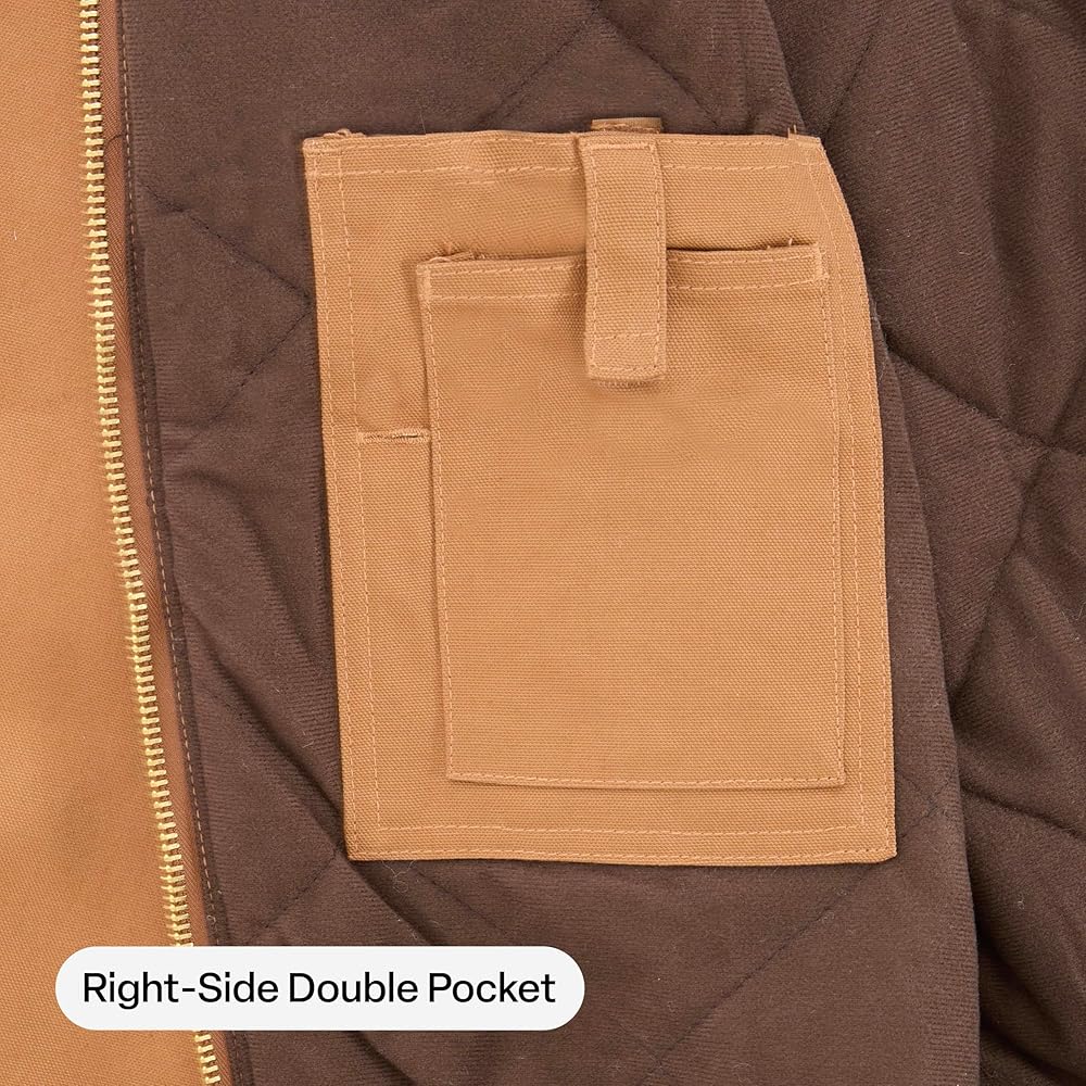 - Shell: 10 oz. 100% cotton duck. Body Lining: Heavyweight insulation quilted to polyester brushed tricot. Sleeve Lining: Medium-weight insulation quilted to polyester taffeta