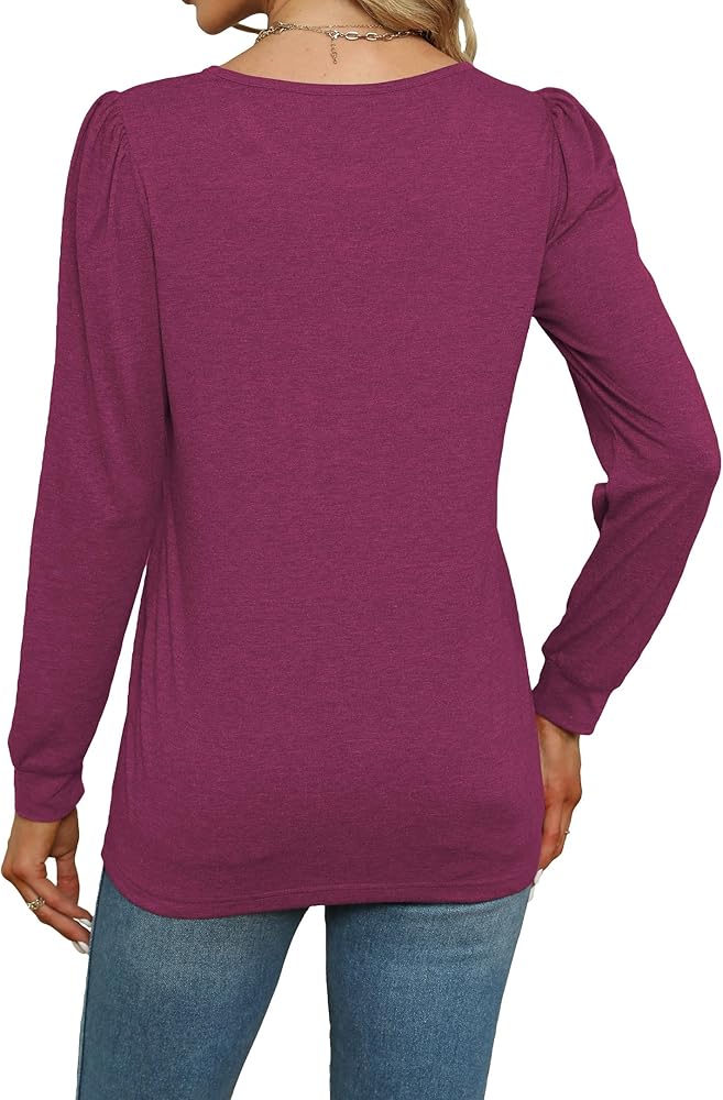 JomeDesign Womens Tops Long Sleeve Crew Neck Shirts Puff Sleeve Casual Tshirts