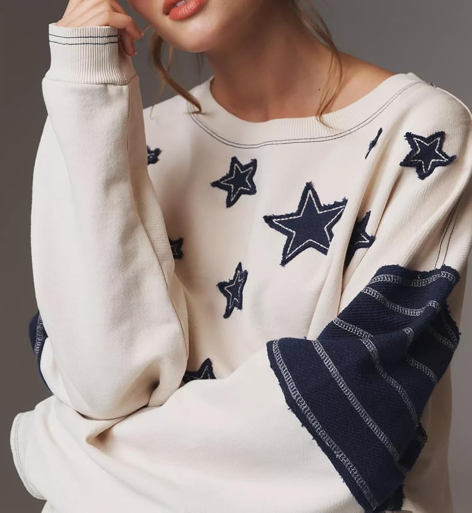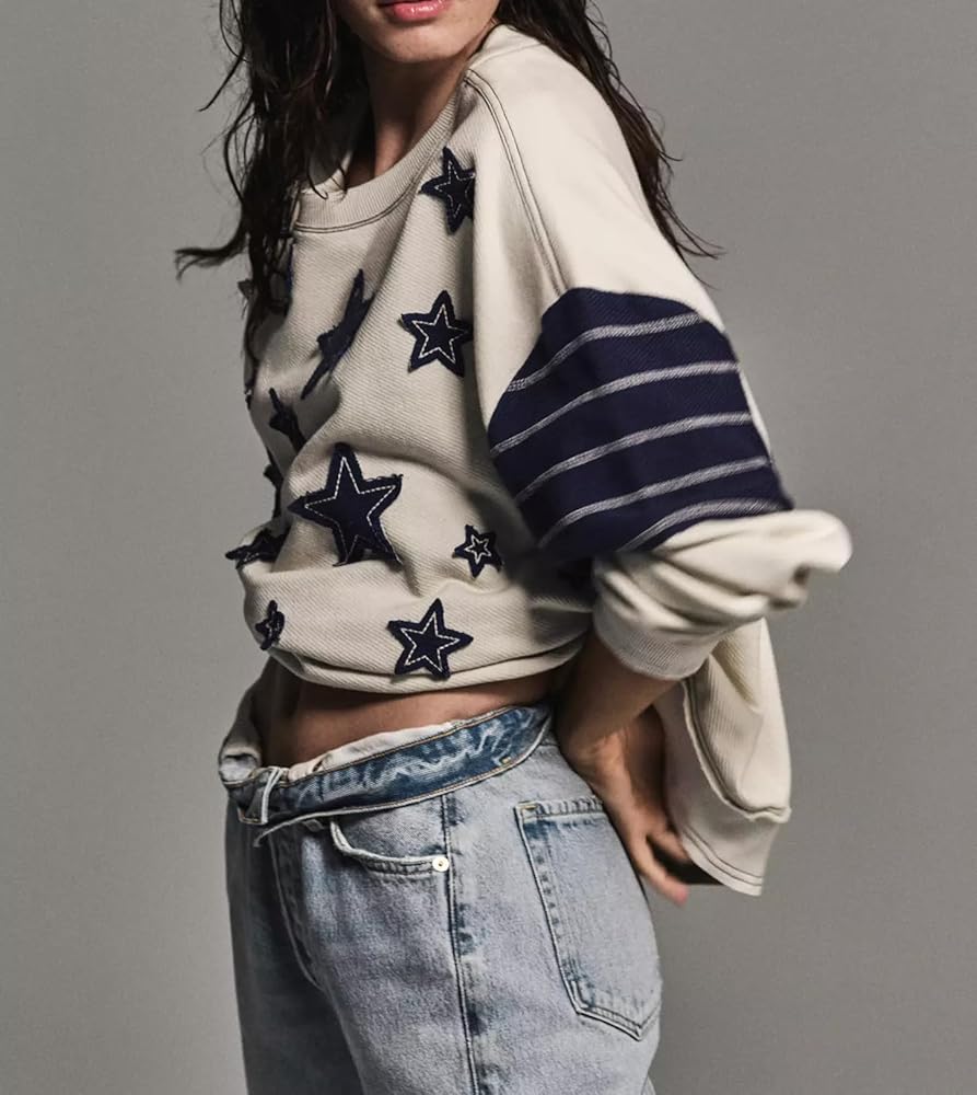 Material: Star graphic oversized sweatshirt for women, crewneck sweatshirts women is made of premium polyester material. Lightweight, cute, stretchy, soft and comfortable to wear. Oversized graphic sweatshirt for women, vintage crewneck sweatshirt, y2k sweatshirt