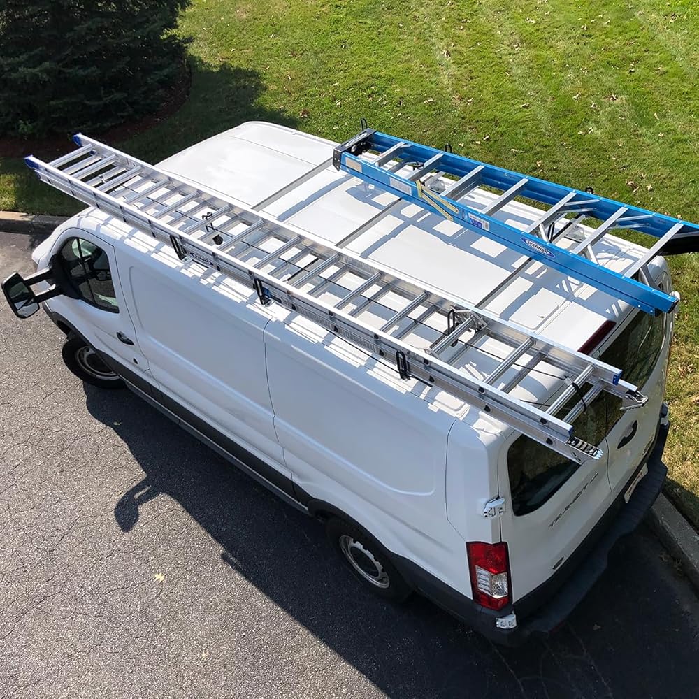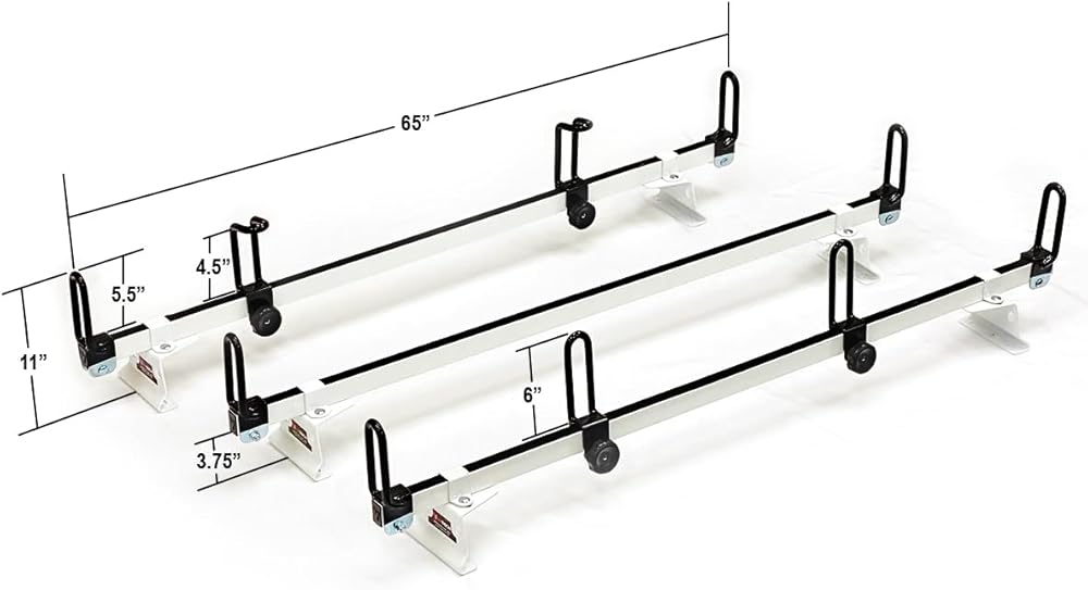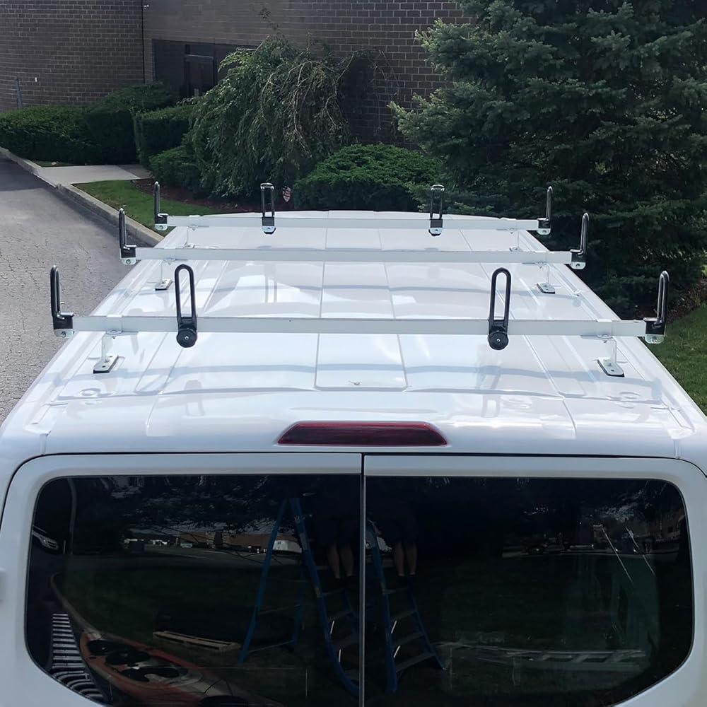 The Vantech Heavy Duty 3 Bar Ladder rack is brand new in its original packaging. Our rack is made of high-quality durable steel. The steel is galvanized with a powder coated finish. Crossbar length: 65 inches with 64 inches of space once installed. Crossbars are protected by plastic bar guards. The total height is 11 inches with ladder stoppers and side supports, 5.5 inches without. Accessories can be removed to form a flat loading space. We provide rubber gaskets to put between the roof and the ladder rack so there is no metal-to-metal contact. This rack allows you to carry ladders, cargo boxes, surfboards, kayaks, solar panels, and lumber. Can support weights up to 750 lbs. (evenly distributed). Included: Hardware and instruction manual for installation. Professional installation is recommended; but not required. Fitment: Ford Transit Cargo Van Low Roof. No DRILLING IS REQUIRED.