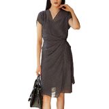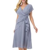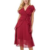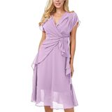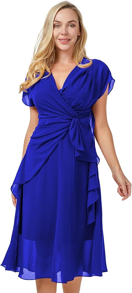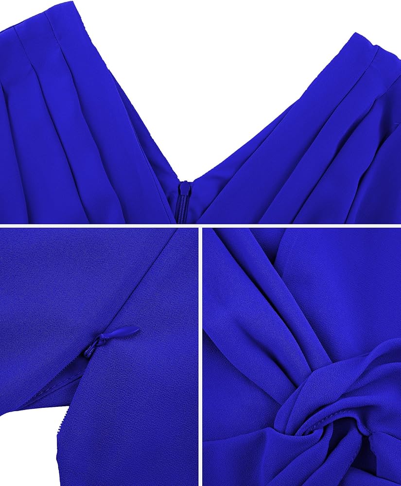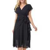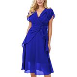 【Features】 Flutter sleeve dresses, wrap v neck, sexy double V neck dresses,midi length,flowy hem.You must be the most shining and beautiful person whenever for any formal or informal occasions.