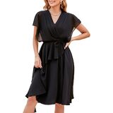 【Material】 This black dresses for women is made of smooth, stretchy and lightweight polyester material, which is stylish and formal with flutter sleeve, midi length and more unique design.