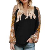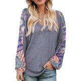FEATURES: Trendy batwing lantern sleeve tops, v neck blouses(can wear as off the shoulder tops for women), floral printed patchwork, elasticated cuffs, curved hem, plus size/loose fit, vintage ethnic graphic print womens clothing, flowy long sleeve tunics