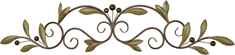 HANDCRAFTED BEAUTY: Openwork scrolling designs craft this charming handcrafted metal wall topper, which is accented with textured olive leaves and growing berries