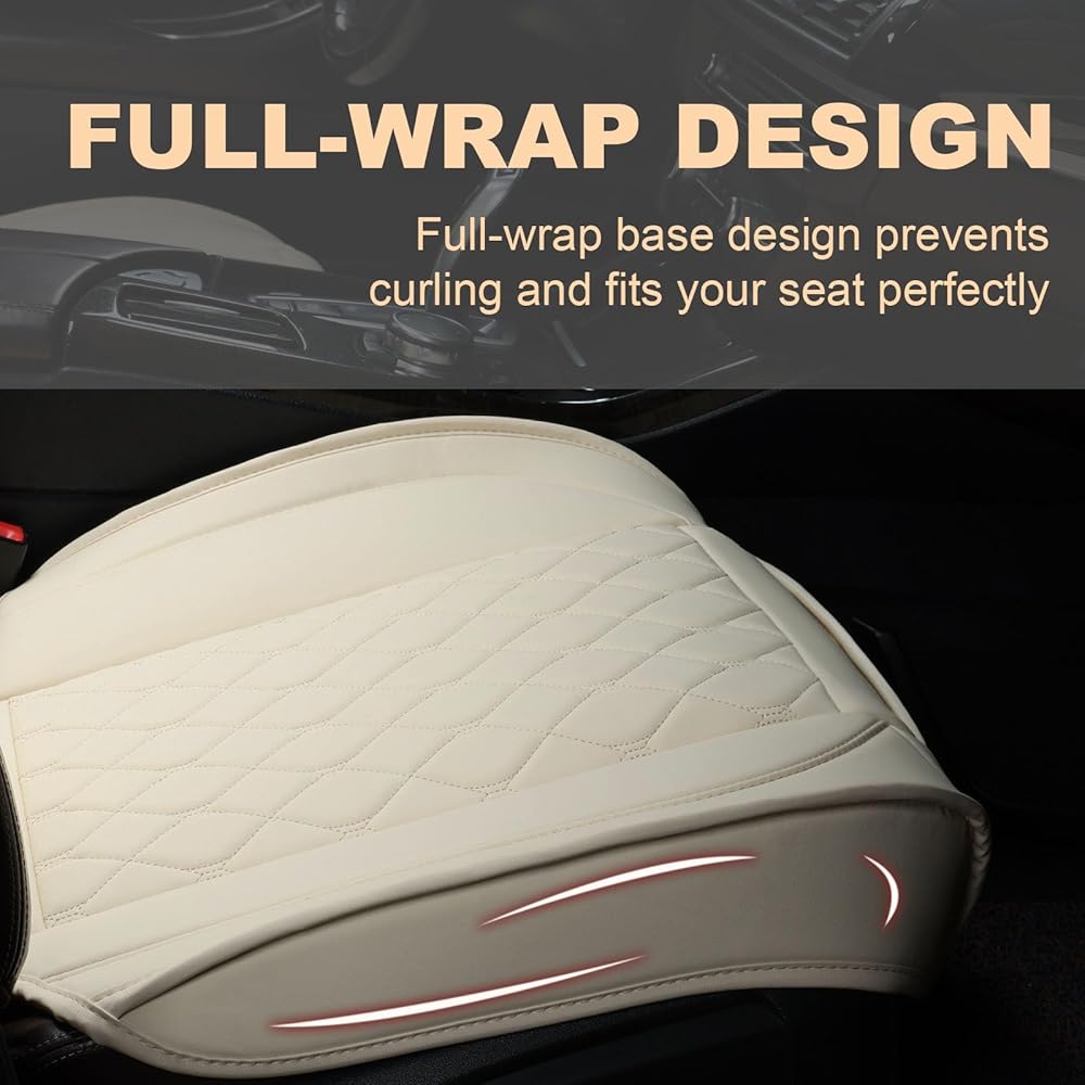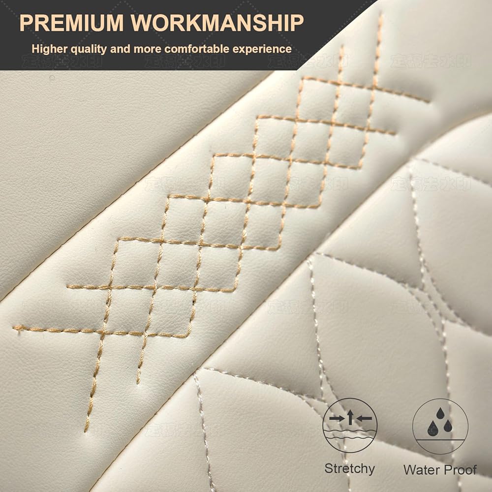Front Leather Car Seat Covers – Waterproof, Universal Fit for Most Trucks, Jeep, Van, SUV, Pickup, Sedan, Airbag Compatible, Luxury Seat Protectors with Storage Pocket (Off-White)