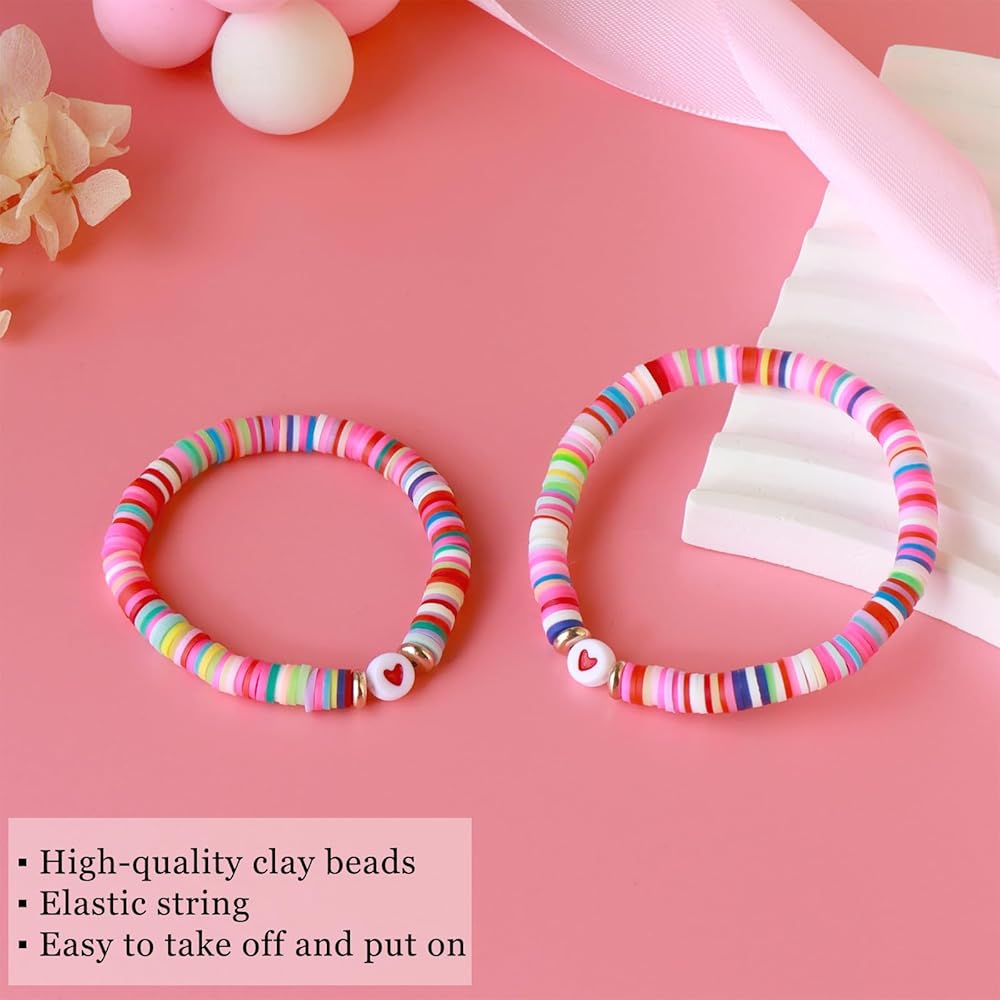 【High-Quality Materials】 -- The heart bracelet is made of high-quality clay beads and elastic string. Hypoallergenic, no harm to your skin. The beautiful bracelet is suitable for daily wear.