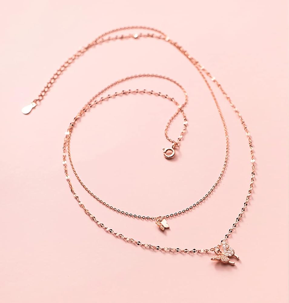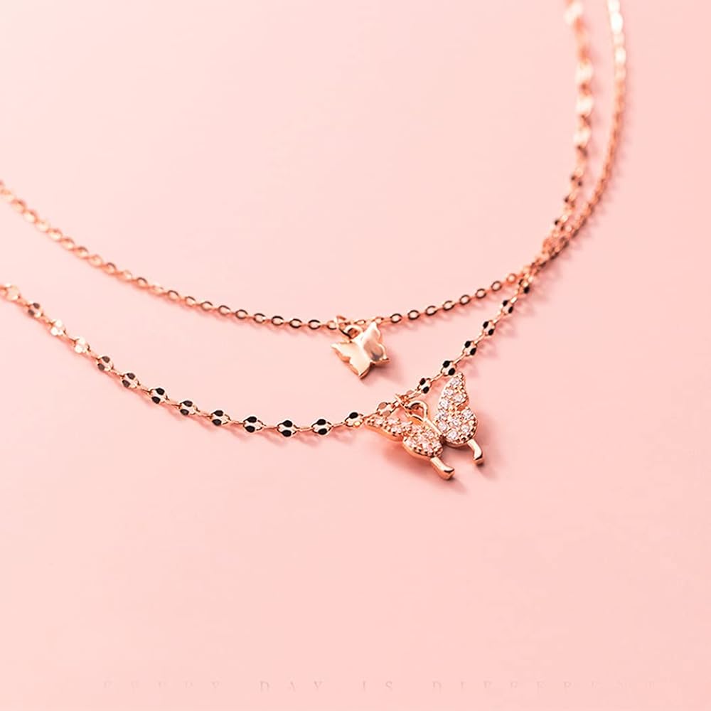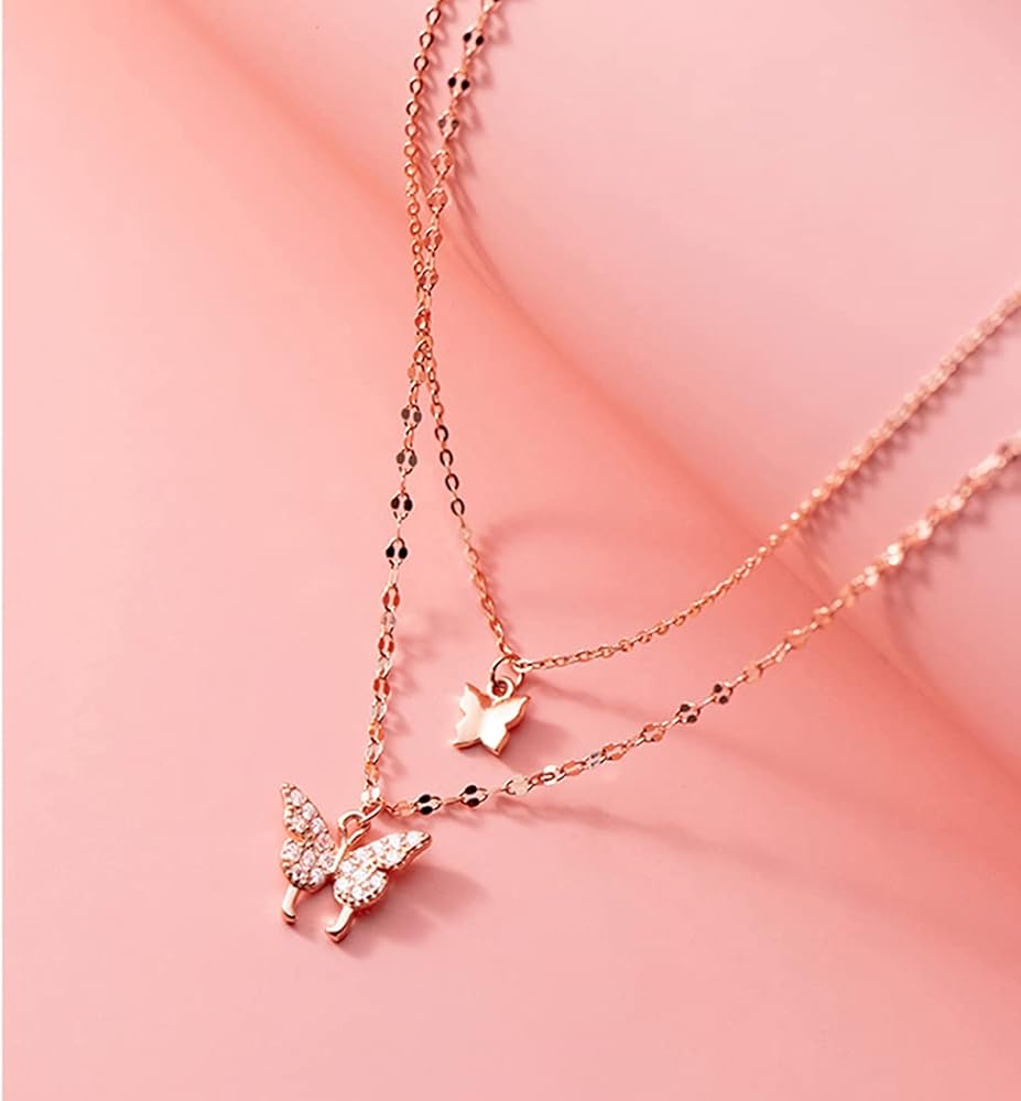 Pretty double butterfly layered necklace choker necklace, looks fashion and pretty, perfect necklace for women teen girls.