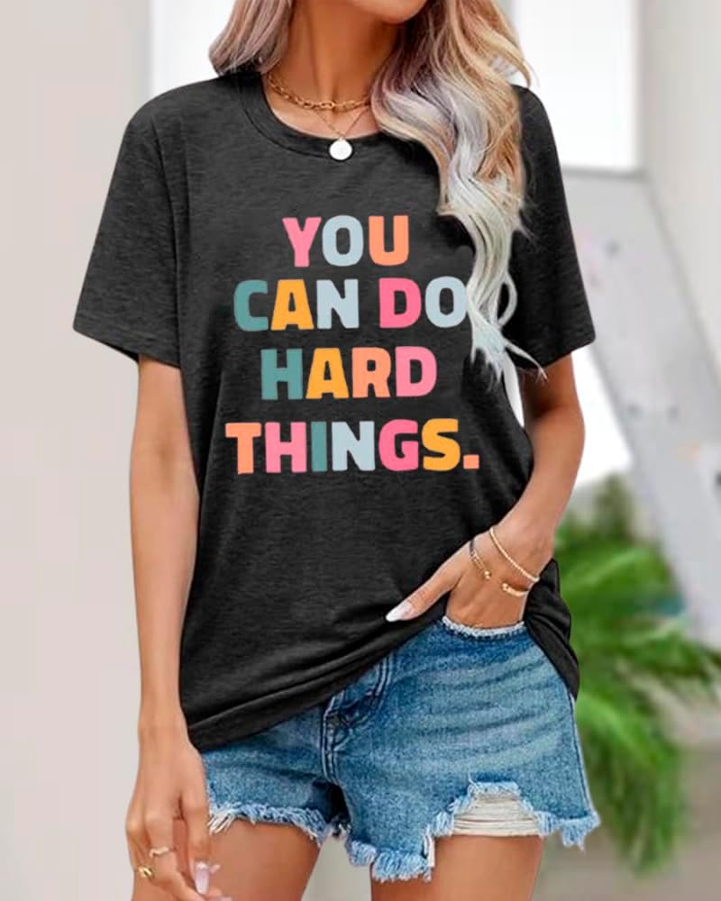 Features: You can do hard things inspire letter print shirt for teacher, first grade teacher shirts, inspire graphic tee tops
