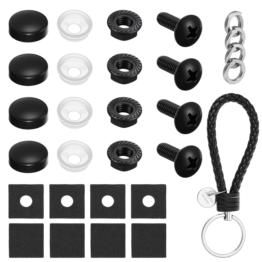 Complete Kit: This license plate screw caps kit includes bolts, nuts, and caps, all of which are treated with a black oxide process, giving it a stylish and uniform appearance