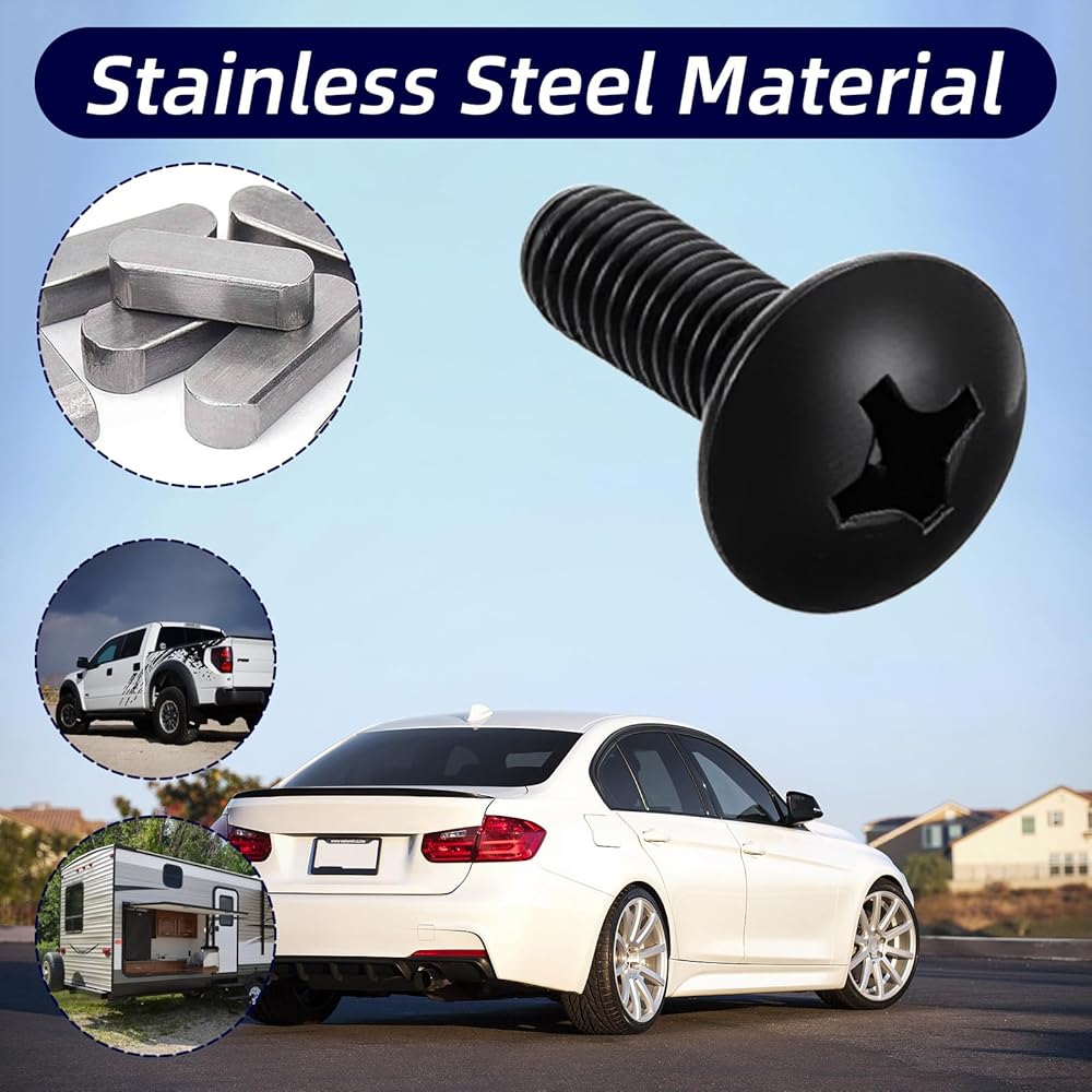 Premium Material: These black license plate bolts are made of high-quality stainless steel, which is ideal for use in wet or wooden environments, rusted fasteners to ensure long-lasting durability