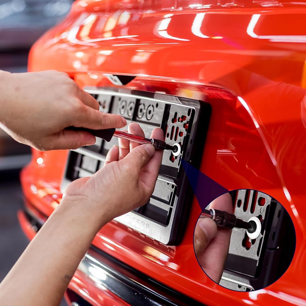 Standard M6 Bolt Size: This license plate bolts kit includes M6 bolts (1/4" x 5/8") with cross slot heads, which are suitable for license plate holes on most cars, motorcycles, trucks, and trailers