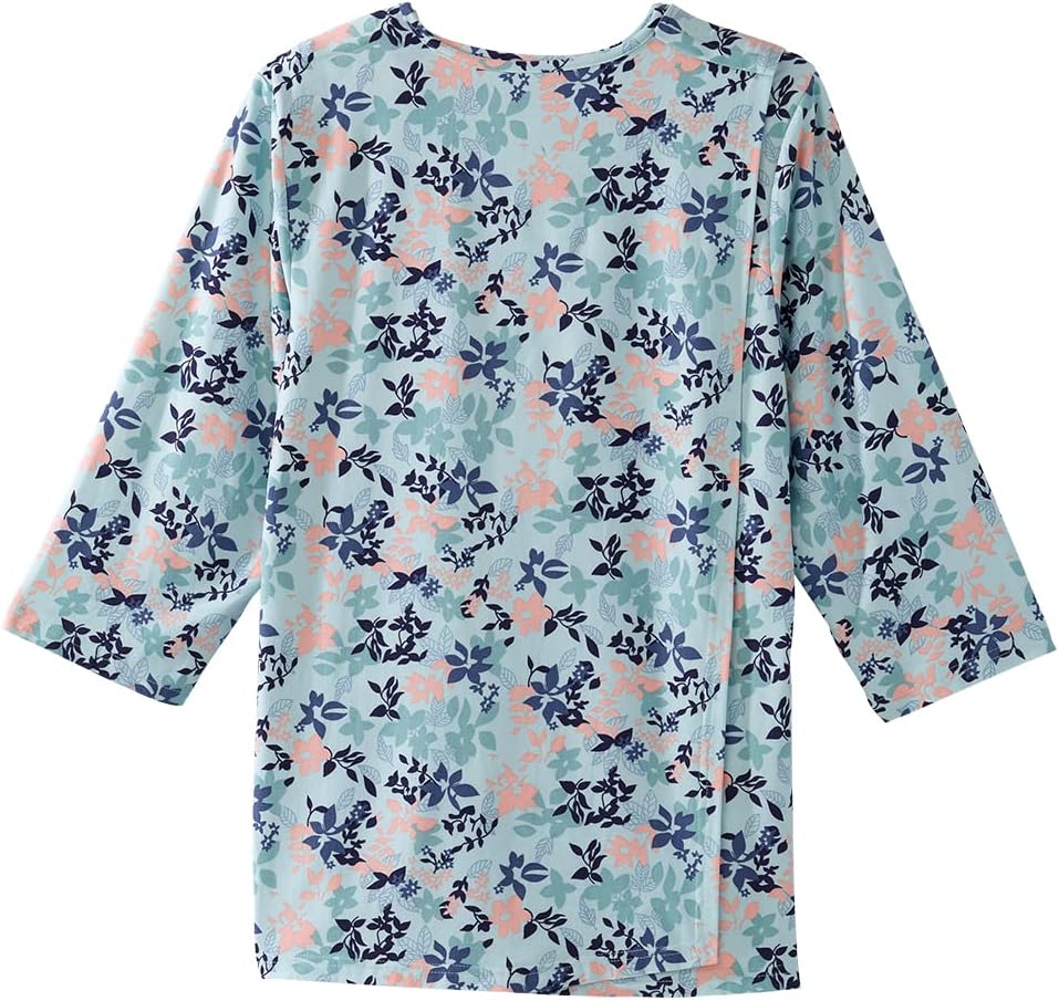 EASY ASSISTED DRESSING: These tops for elderly women are designed with no-peak overlapping back panels, so individuals can easily get dressed and undressed. This adaptive top for women features a discreet and generous back overlap for additional coverage with snaps at each shoulder for caregivers to easily secure this garment.