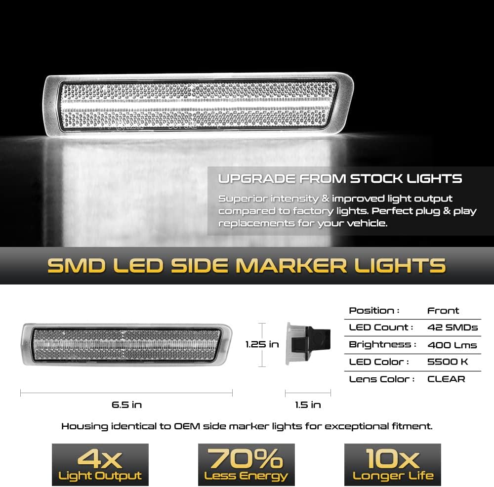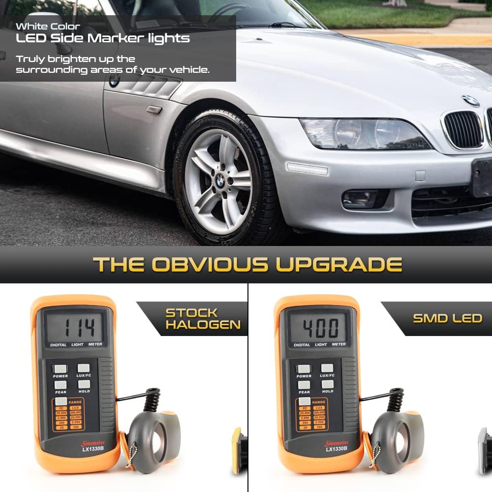 VIPMOTOZ Full LED Front White Side Marker Lights Compatible With 1996-2002 BMW Z3 M Roadster Chrome Lens Clear Lens Pair Set