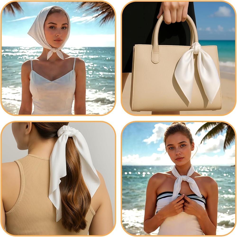 Easy to Match: This white satin neck scarf features a classic square design, simple yet elegant. The neutral color palette of the silk bandana makes it easy to match with various outfits and coordinate with different colors and patterns.