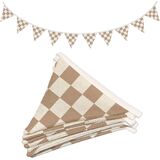 Boys Toddler Room Playroom Nursery Decor, Garland Triangle Banners Blue Grey,11Ft Vintage Warm Neutral Plaid Design Pennant Banner Bunting Flags Fabric for Baby Shower Birthday Party Wall Art