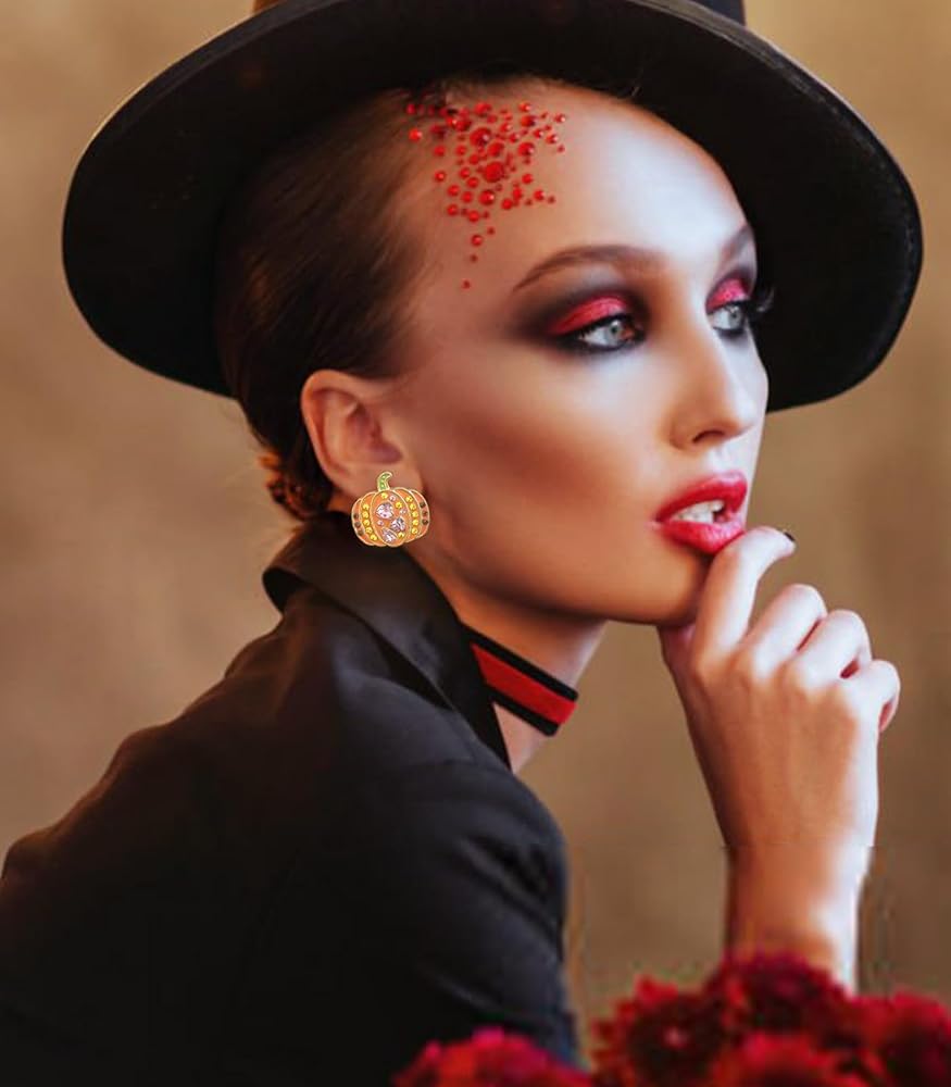Halloween Stud Earrings Set for Women: A must-have for Halloween costume accessories, designed with many vivid Halloween themed patterns, like gold pumpkin, white ghost and colorful letters hey boo, to make you more attractive on halloween party.