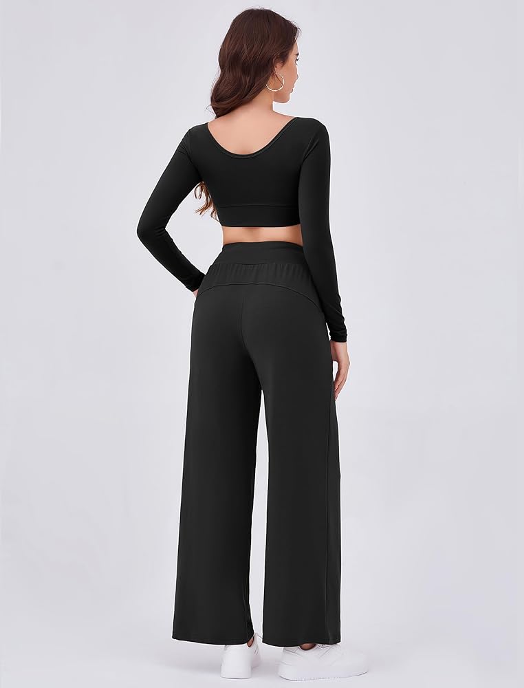 MATERIAL: Women's wide leg pants, crafted from soft breezy fabric, comfortable & skin-friendly, and lightweight, suitable for spring, summer, fall and winter. High waisted and stretchy sweatpants for a comfy look, suitable for a variety of sporty, casual and work leisure styles