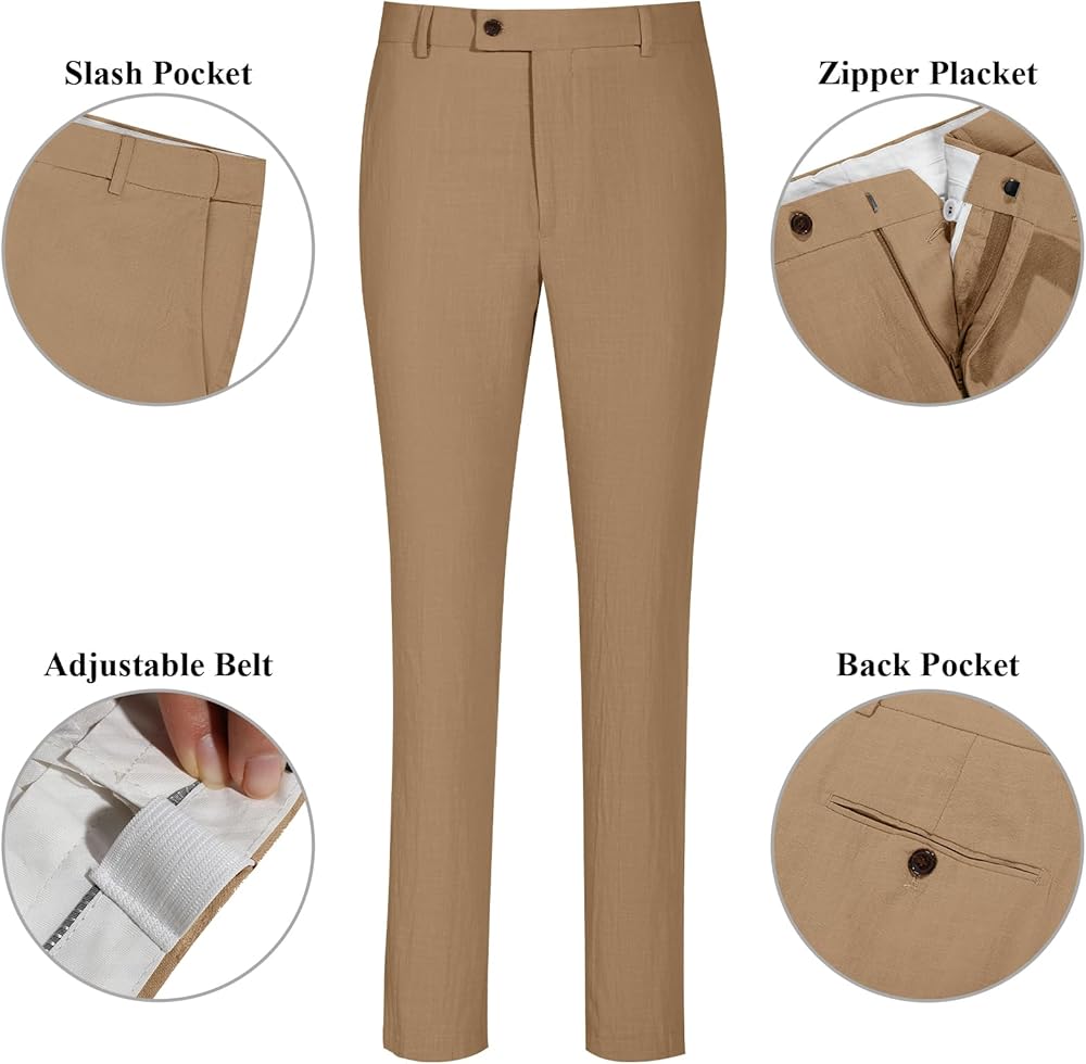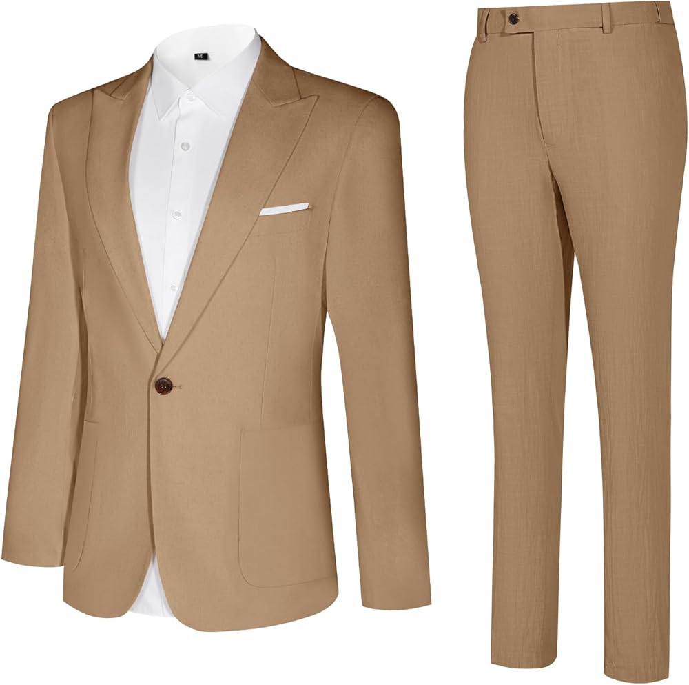 LINEN FABRIC: Made of high quality linen fabric with excellent comfort and breathability, this suit is light to wear and keeps you comfortable all day long. Linen fabric fiber is strong, not easy to puncture and tear, very durable.