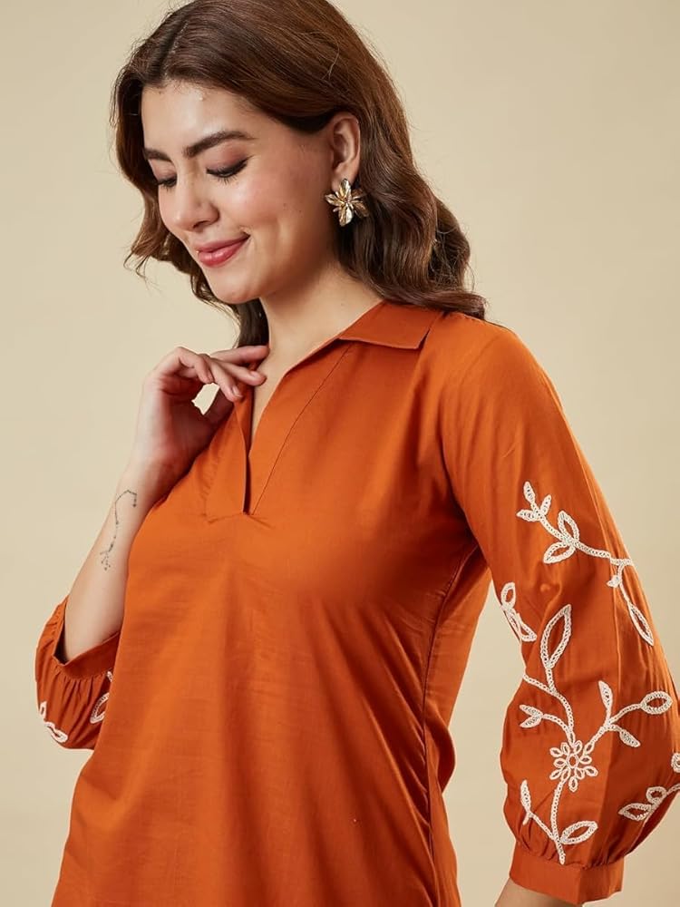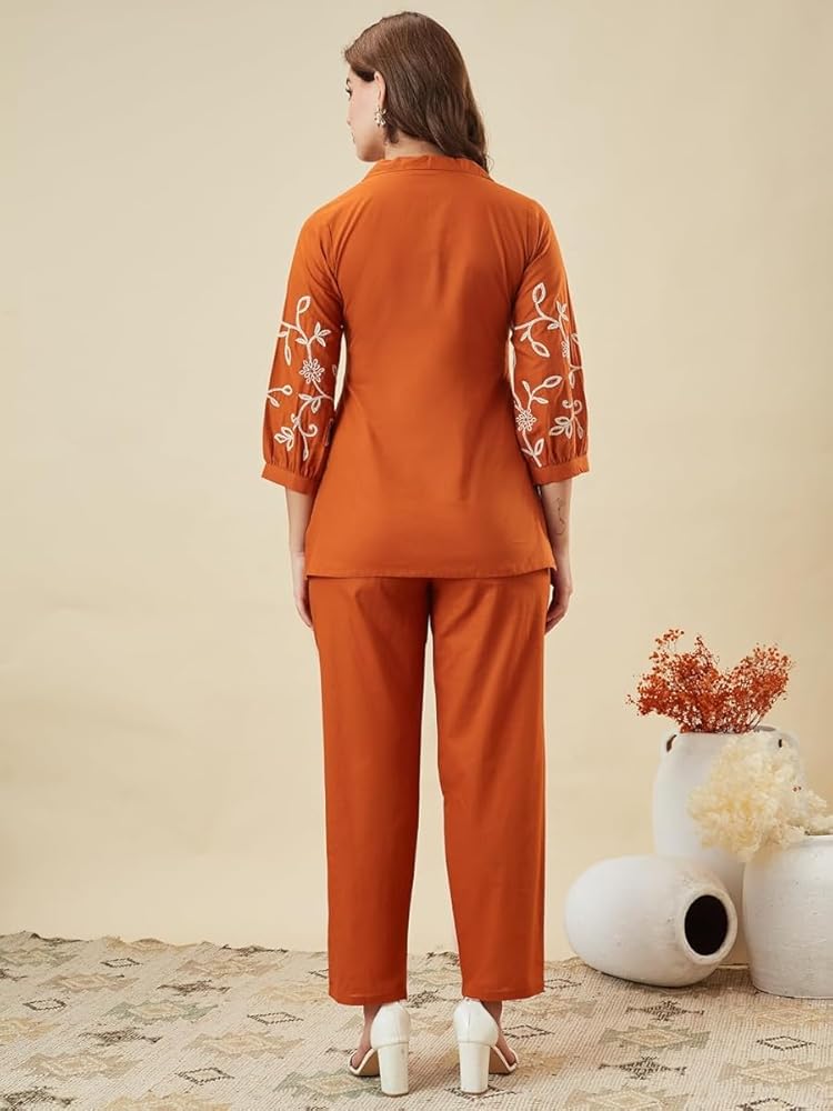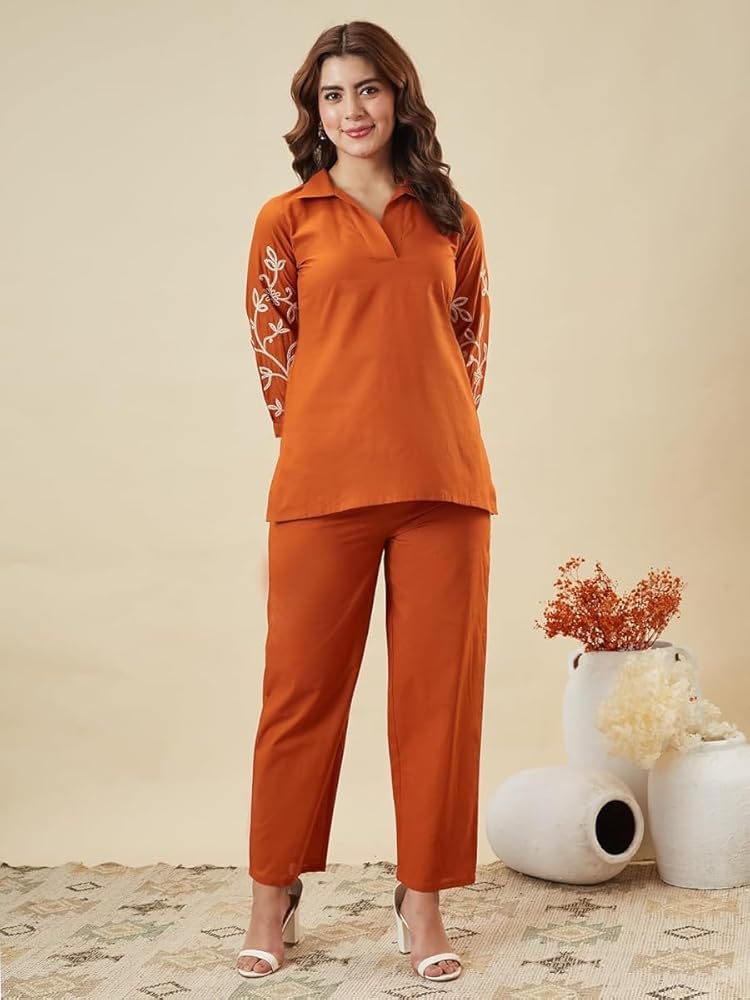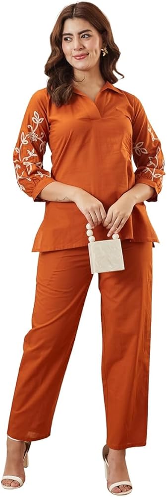 Womens kurta set with Pant : Crafted with Pure Cotton fabric, this kurta set features intricate embroidery , making it perfect for festive events, weddings, and parties.