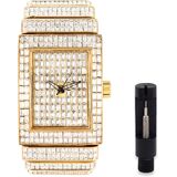 FULLY Iced Out Watch - The entire band of this watch is covered in premium simulated diamonds crafted from high-refractive crystals, ensuring a sparkle that rivals authentic diamonds under light.