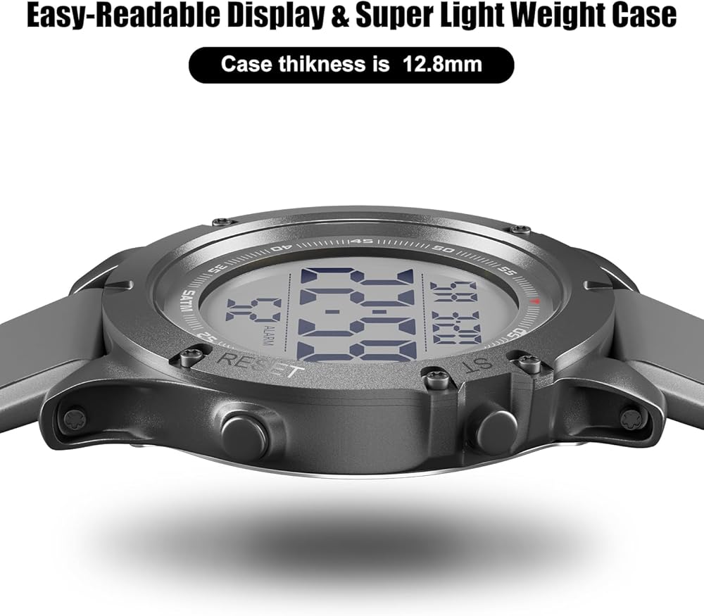 GOLDEN HOUR Mens Digital Sports Watch, Large LCD Display, 5ATM Water Resistant,Silicone Band