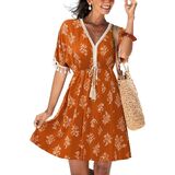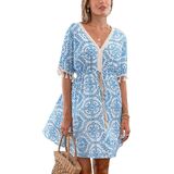 [Unique Design]: Embrace carefree vibes of the Blue Bohemia V Neck Summer Mini Dress! Featuring a flattering V neckline, short sleeves, and playful tassel trim, it's your go-to for effortless everyday styling.
