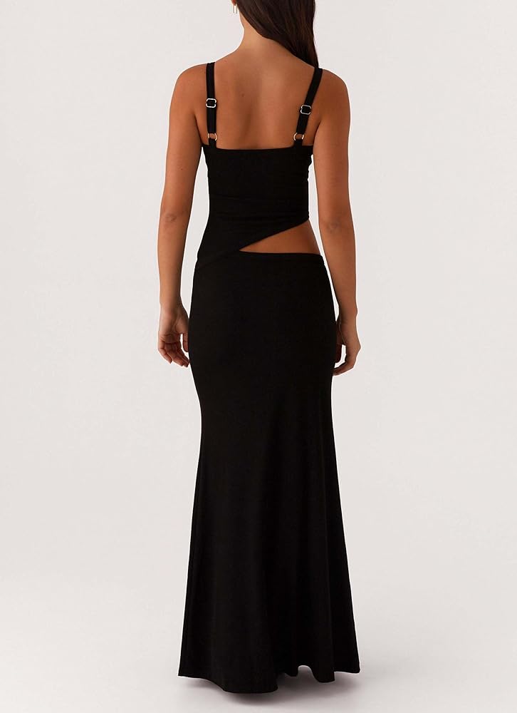 Match: Sexy v neck slim fit cocktail wedding guest dress elegantly hugs the feminine curves, before falling gracefully over the hips into an elevated long dress. Elegant bodycon cut out cocktail party maxi dress perfect for wearing alone or layering. Pair it with your favorite heels, sneakers or sandals for a stylish yet resort look. Womens summer dresses, hollow out waist spaghetti strap beach dresses, casual flowy dresses for women 2025.