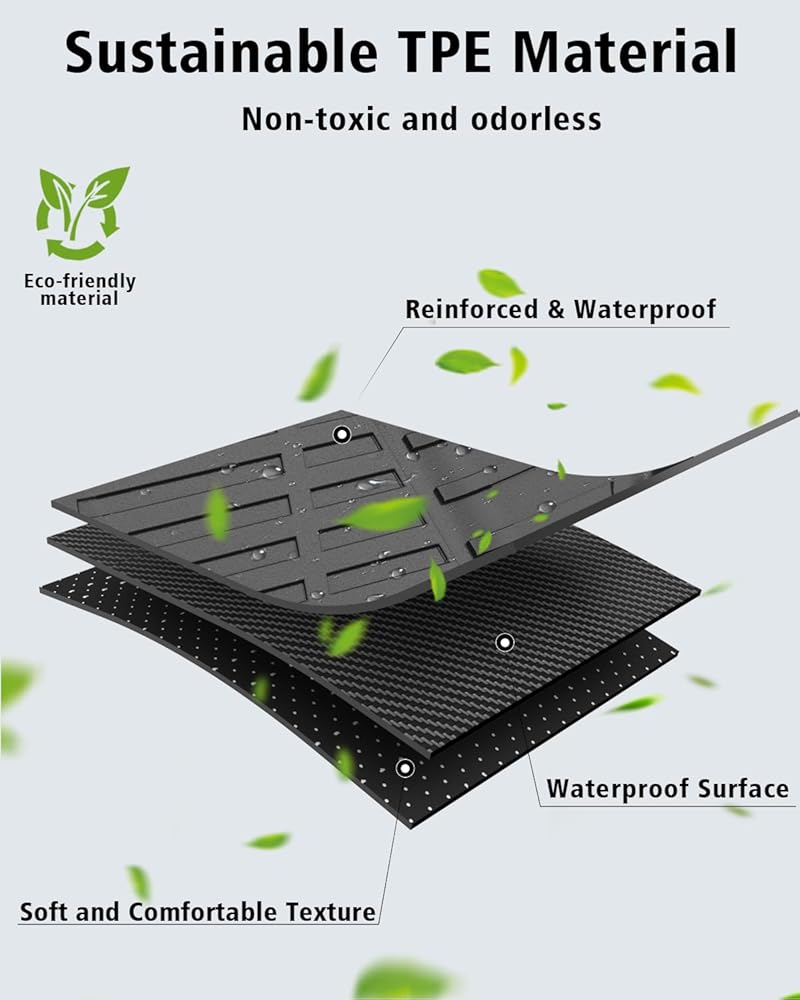 Anti-Slip Full Set Car Mats: We offer not only floor liners but also trunk mats and backrest mats. Our newly designed textured surface fits perfectly over the original floor. These rubber floor mats stay securely in place without moving or sliding, ensuring safety and stability throughout your entire drive.