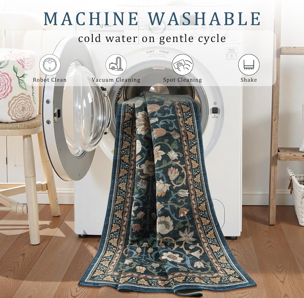 Machine Washable Rug: Anidaroel vintage rugs are easy to maintain. Simply vacuum, shake, or sweep for daily cleaning. For deeper cleaning, toss the rug in the washing machine with cold water, and it'll look like new