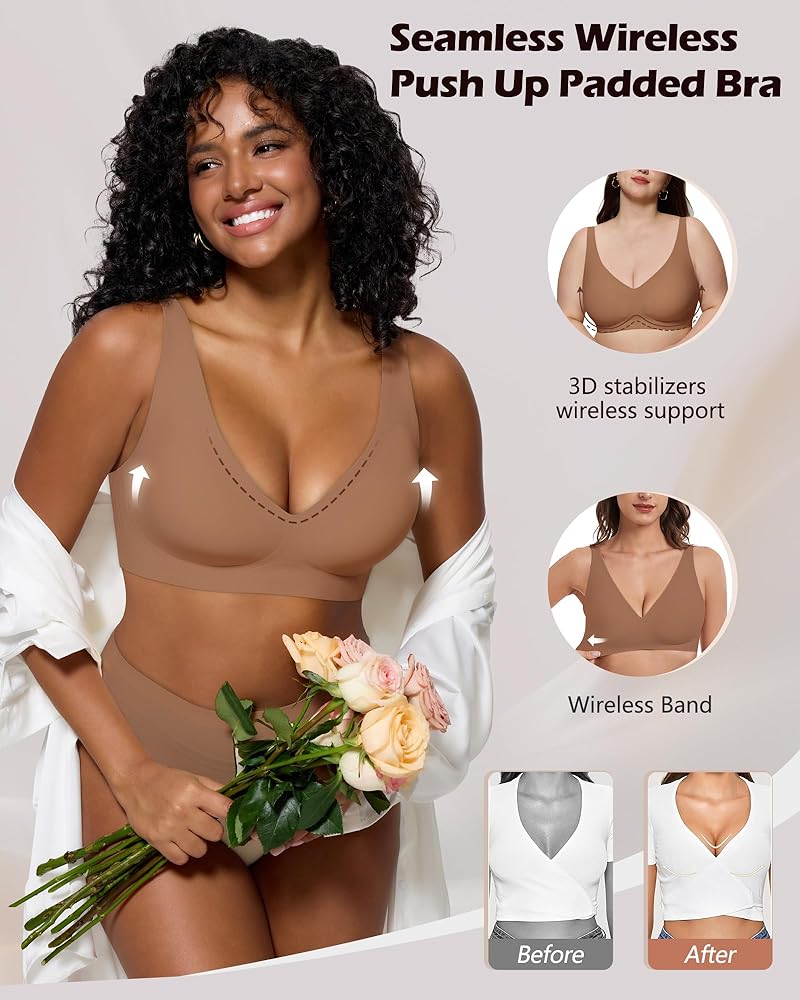 Wireless Seamless Everyday Padded Bra: The supportive bras for women push up you breast naturally. The full coverage bras for women perfect for any outfit. high-quality fabric with a delicate texture. The tailored, sculpting cups provide uplifting support, while the buttery-soft, stretch-infused fabric moves with you in all-day, cloud-like comfort.