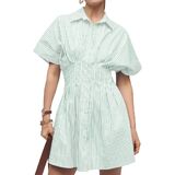 Versatile Style: Button front pleated shirt dress for women, lapel collar, pleats at waist, short sleeve, A line, side pockets, striped button up shirt dress, solid pleated mini dress, summer going out short dresses