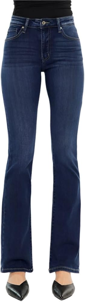 Our Denver High Rise Bootcut Jeans come in a flared, bootcut fit with whiskering and a gently faded wash for a classically chic look. Sits above the natural waistline as it tapers down the thigh and flares out at the calf. Made with stretch denim that moves with your body as it maintains its shape even after multiple wears. Features a classic five-pocket design, single-button front, and zip-fly closure
