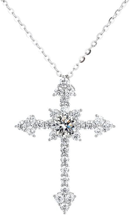 【Shiny Design】The cross full of sparkling moissanite is perfectly combined with the platinum chain, and the combination becomes this moissanite cross necklace, which can easily become the focus of the audience when worn.