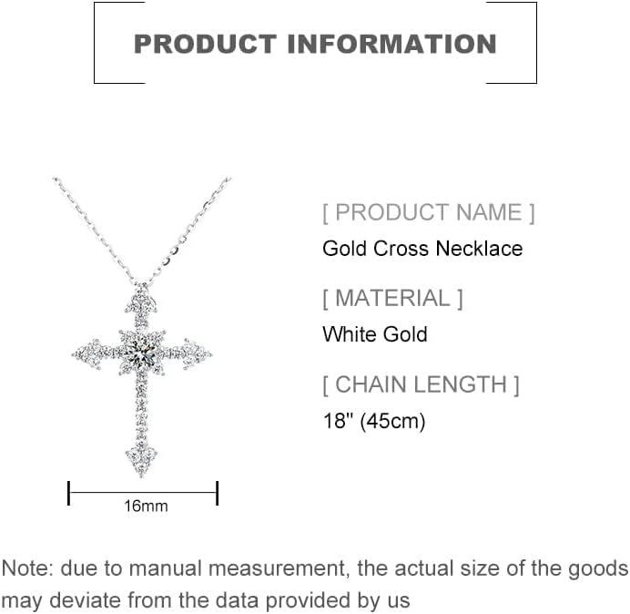 【Genuine Material】14k White Gold and High Hardness Moissanite, High Refraction, Chain length is 18 inches (45 cm, including 5 cm adjustable tail chain), cross is 1.02 inches (26 mm) long, 1.77 inches (45 mm) high, the weight of the necklace is about 6g.
