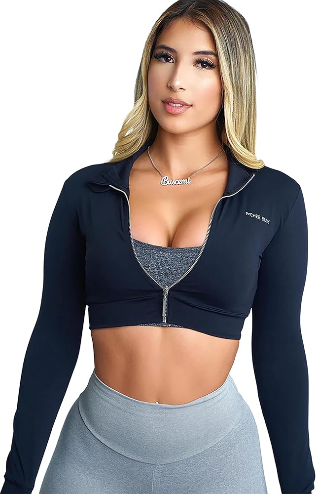 BORN AND RAISED IN MIAMI, STYLE AND COMFORT: The PcheeBum Cropped Sports Jacket combines style and comfort in one. Its trendy cropped design adds a fashionable touch to your workout ensemble, while the slim fit flatters, contours, and highlights your curves in the best way, making you look and feel confident during your fitness routines. With this cropped jacket, you can stay fashionable and look snatched without compromising on comfort.