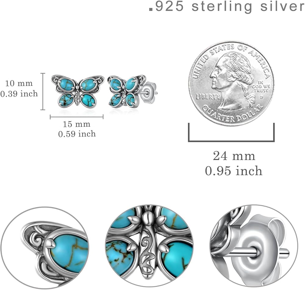 Size: Delicate butterfly design measures approximately 0.39 *0.59 inches across, the real turquoise jewelry for women are lightweight ,is perfect for everyday wear.