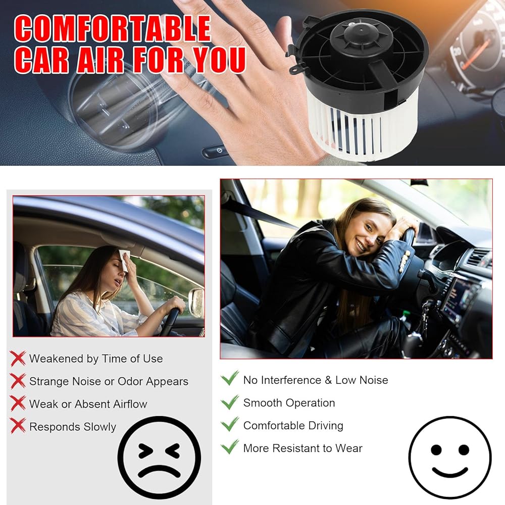 Benefit of the blower motor: Your blower motor moves air through your HVAC system. Air passing over your A/C evaporator or heater core provides cooled or heated air to your vents.Provides a comfortable ride environment for the occupants, reduces the fatigue of the driver, improves the safety of driving, air purification