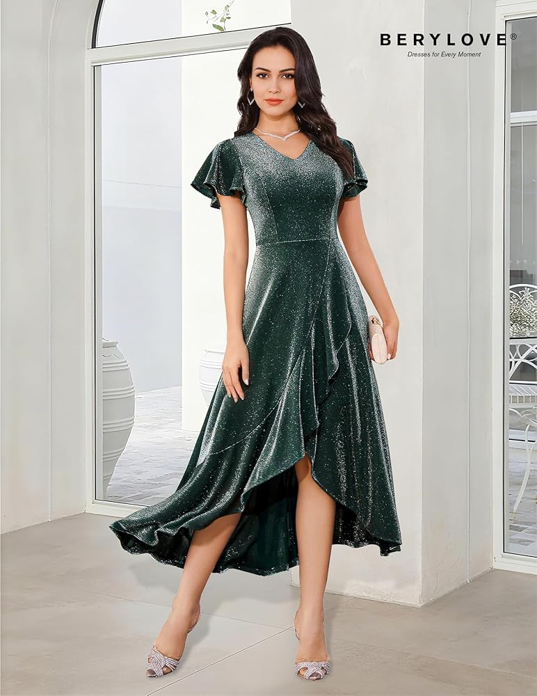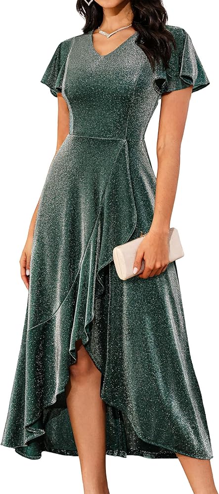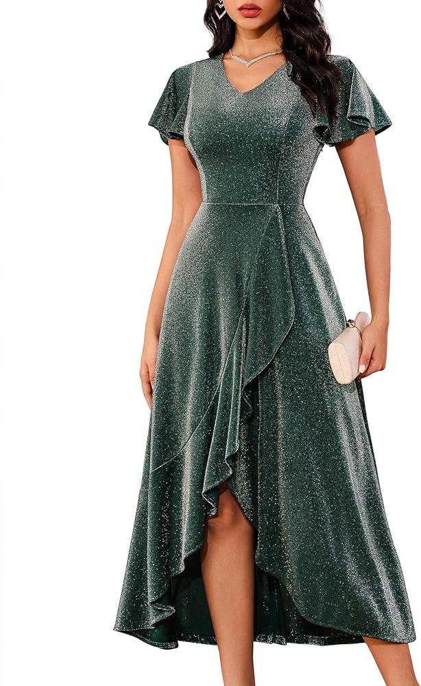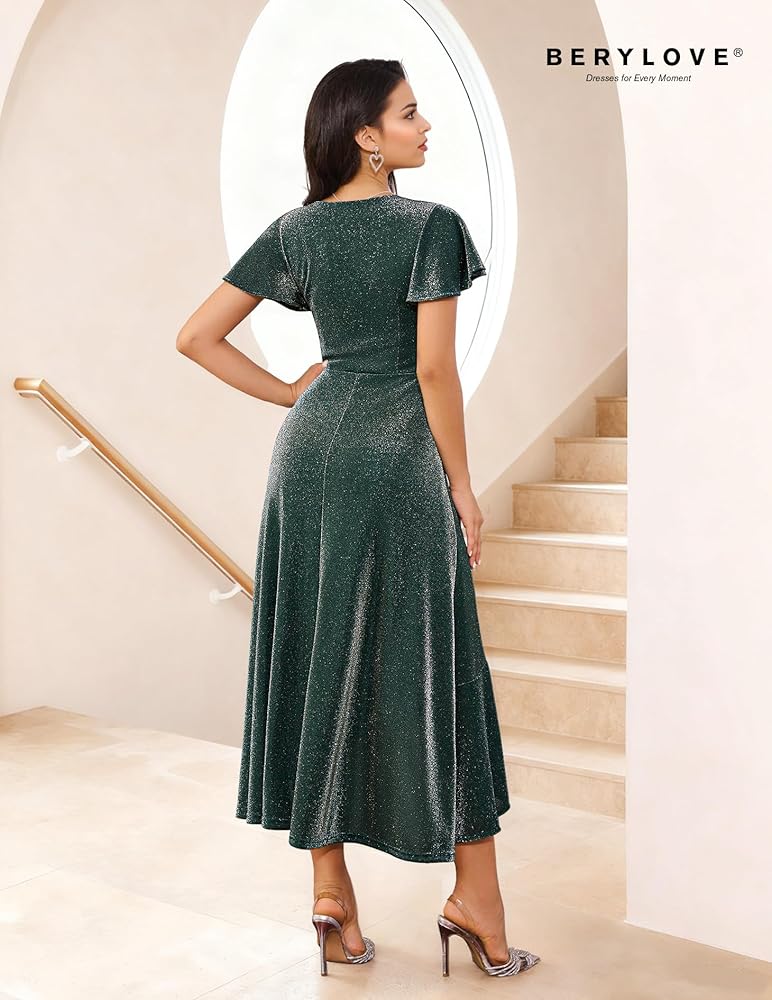 Long Formal Dress - This glitter dress is soft and flowy, perfect for parties! The party lights will shine on you and you will be the brightest in the room.