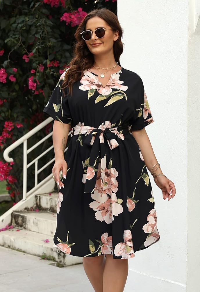 Featrues: Well-made nice cut, classic floral and geometric print boho swing dress, color block,cute and pretty design, fit and flare,flattering plus size fit, stretchy empired waistline, short batwing sleeve, waist with seperated belt, asymmetrical hem,side split, knee length dresses. There are 2 sides pocket at the skirt part,and it is simple and adorable. This trendy and chic womens dresses, and makes you look more charming and attractive!