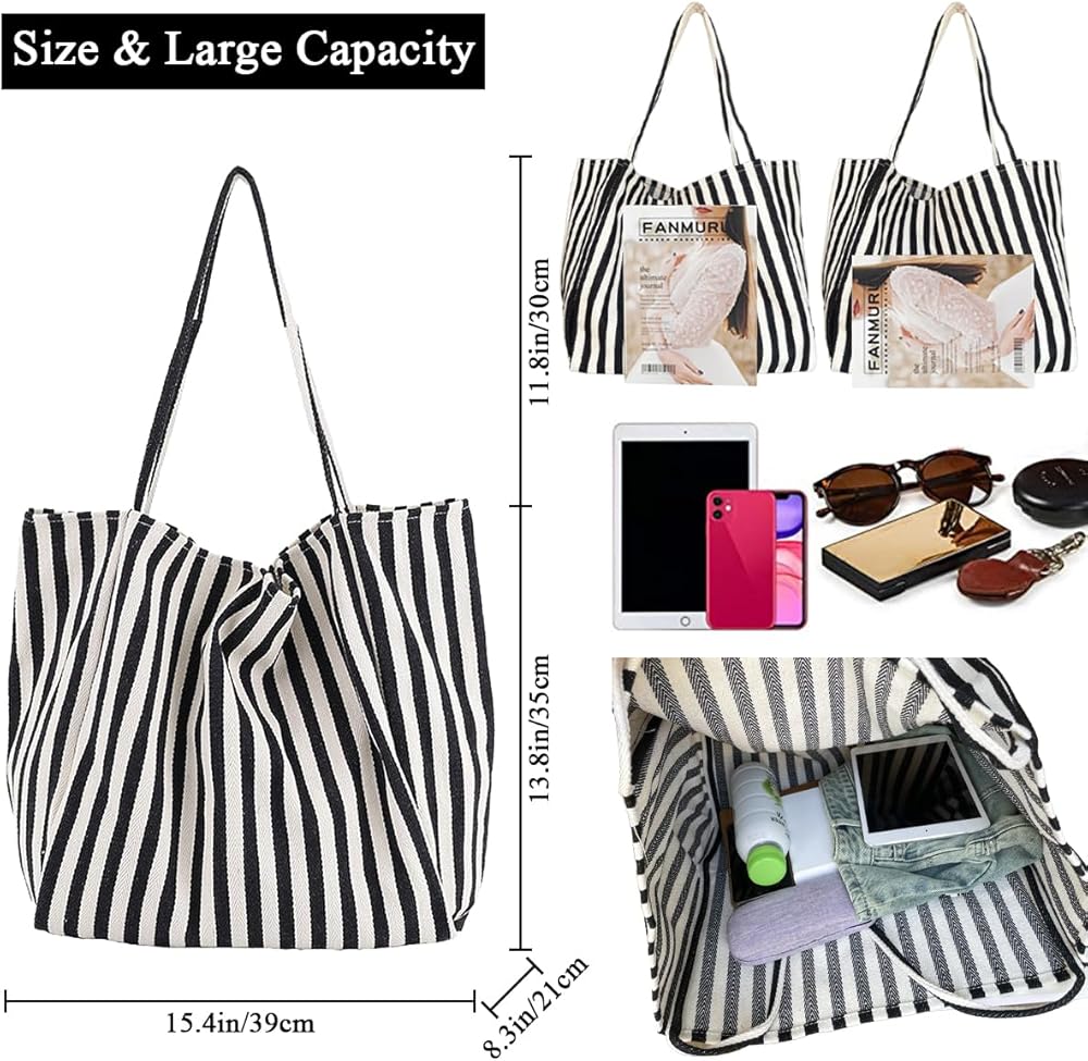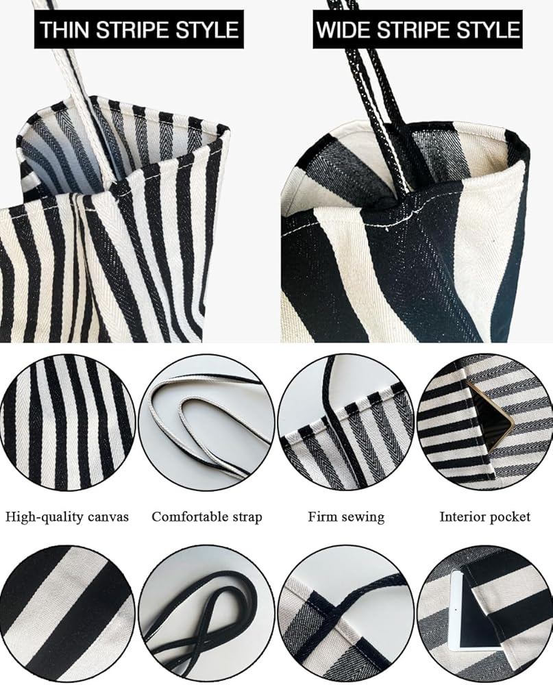 Material: This striped bag is made of high-quality canvas outer layer, which is soft, comfortable and durable.
