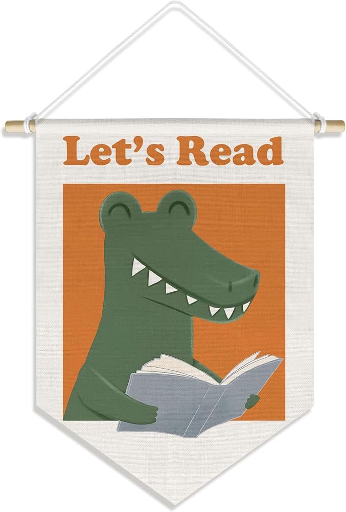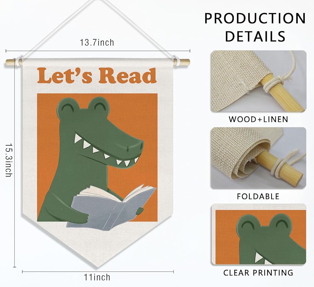 Dinosaur Kids Reading Corner Nursery Classroom Wall Decor Banner, Let's Read Kid Reading Nook Decor, Baby Dinosaur Read Pennant Banner Wall Hanging for Boys Girls,15x11in