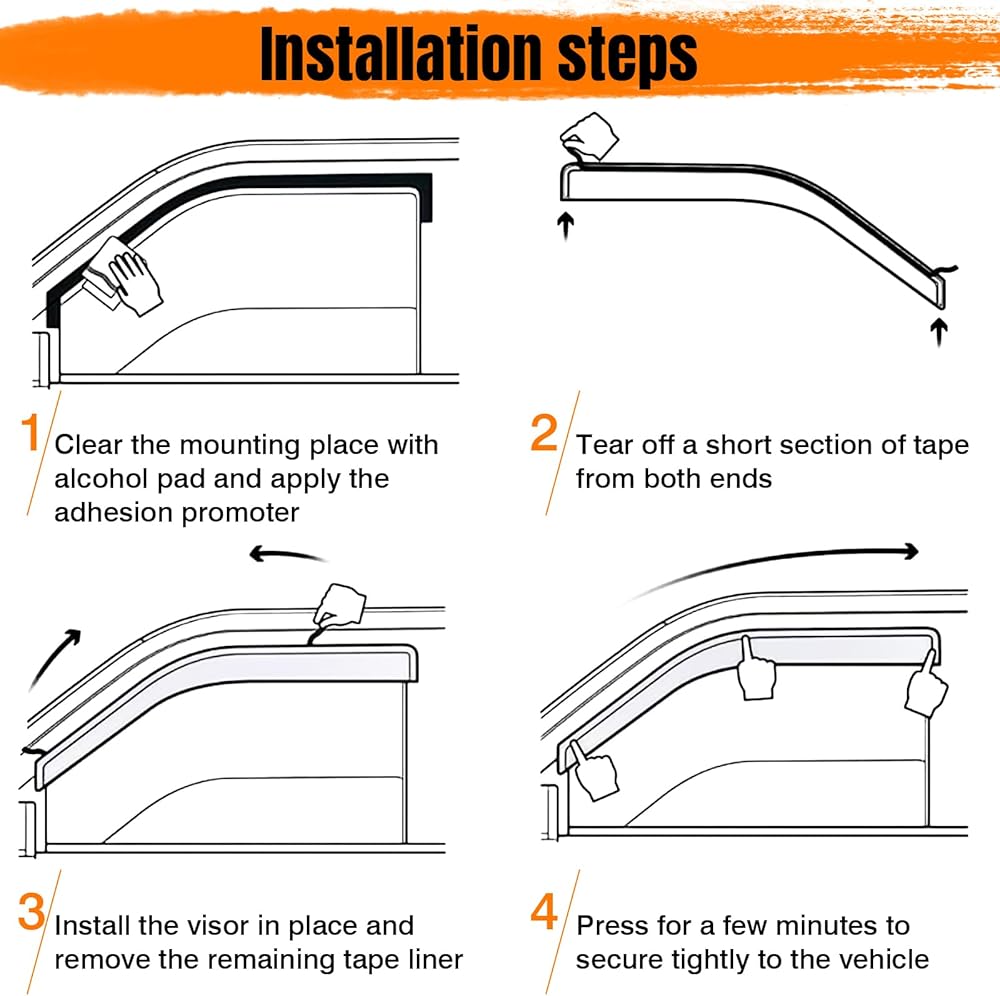Set of Window Visor: Style: Slim Style | Color: Smoke/Tinted | Type: Tape-on/Outside mount | Package Includes: 1 Set of Window Visors(4PC)