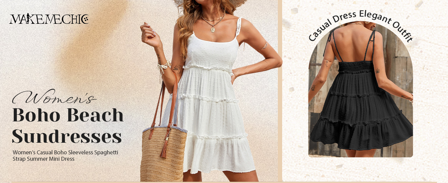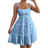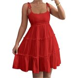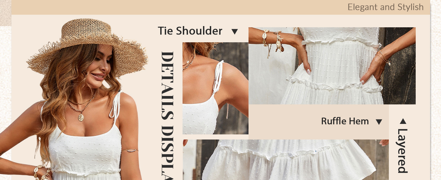 - Features: Swiss dots, tie shoulder, ruffle hem, layered, frill trim dress for women